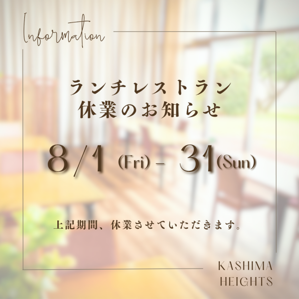 8月のランチレストラン営業のお知らせ