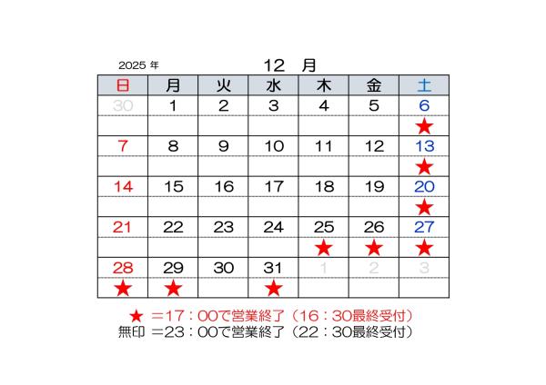 12月の日帰り入浴営業時間のお知らせ (2025/11/27) |