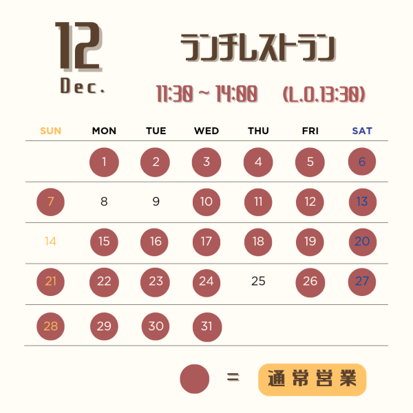 12月のランチレストラン営業のお知らせ