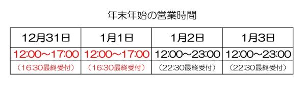 年末年始の日帰り入浴の営業時間のご案内 (2025/12/25)